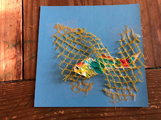 look at N is for Net illustration from LMNOP laminated wall cards, make aluminum foil fish