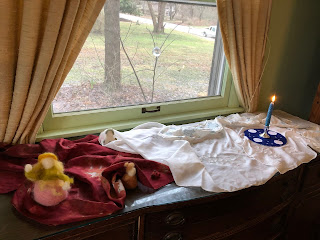 changing out the Nature table, adding snowdrop flower fairy