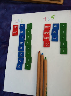 Montessori materials, to help children understand place value, carrying, and borrowing